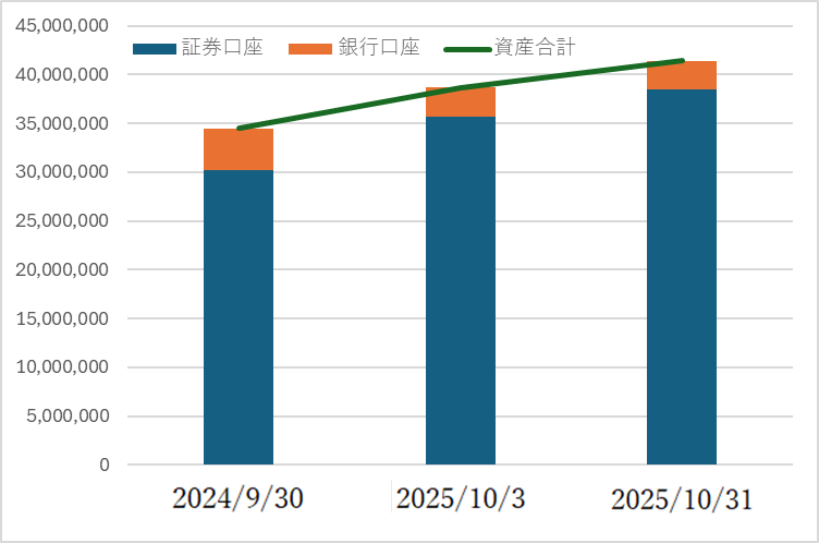ということで、初回はちょっと特別編。 先月末(2025年10月31日)時点の資産に加えて、約1か月前(10月3日)と、去年の同時期(2024年9月30日)の資産も並べてみました!